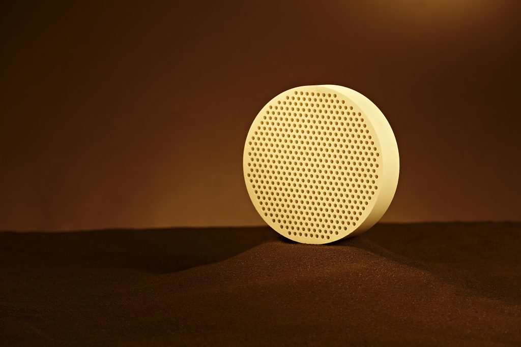 ラウンドホールフィルターは、鋳造工程における湯流れの安定化と介在物除去を目的に開発された高性能フィルターです。独自のドライプレス成型による均一な孔形状が、溶湯の流速を一定に保ち、湯飲みの安定・不回り不良防止・不良率の低減を実現します。