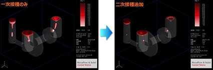 さらに、独自のCV(Control Volume)テクノロジーによって、薄肉・複雑形状部品でも短時間で正確に再現可能。ATASデータとの連携により、実測に基づいた材料特性補正も自動で行える世界唯一の解析ソフトです。